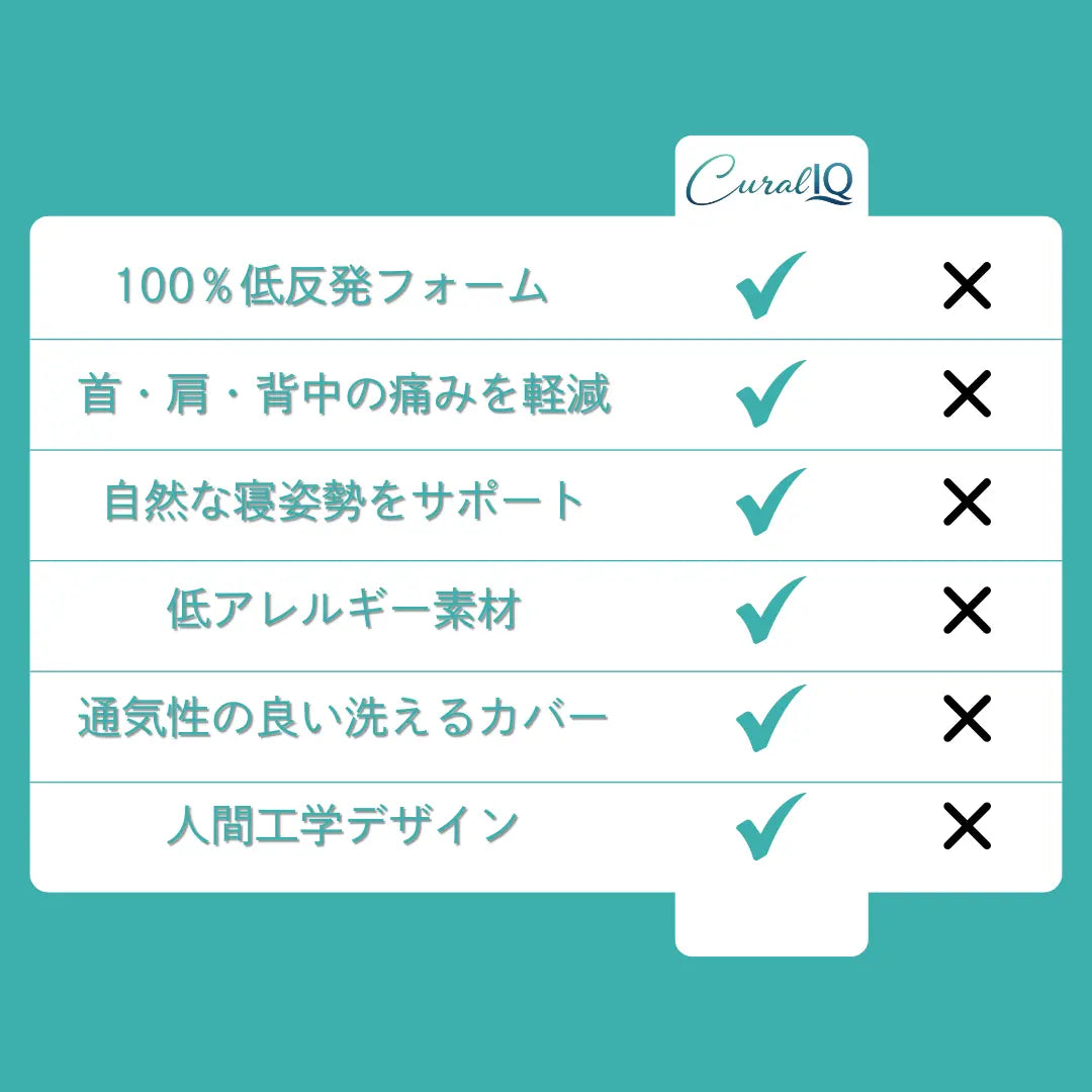 そんな悩みに寄り添うのが、Curaliqの低反発まくら。首・肩のラインにしっかりフィットする特殊設計で、正しい寝姿勢を自然にキープ。夜中に起きる回数も減り、朝の目覚めが驚くほど軽くなったという声が続々届いています。